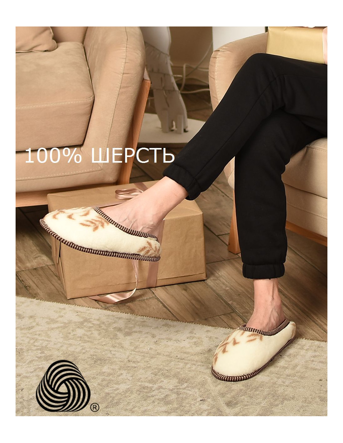 ТАПОЧКИ ИЗ ШЕРСТИ "Молочный Меринос"