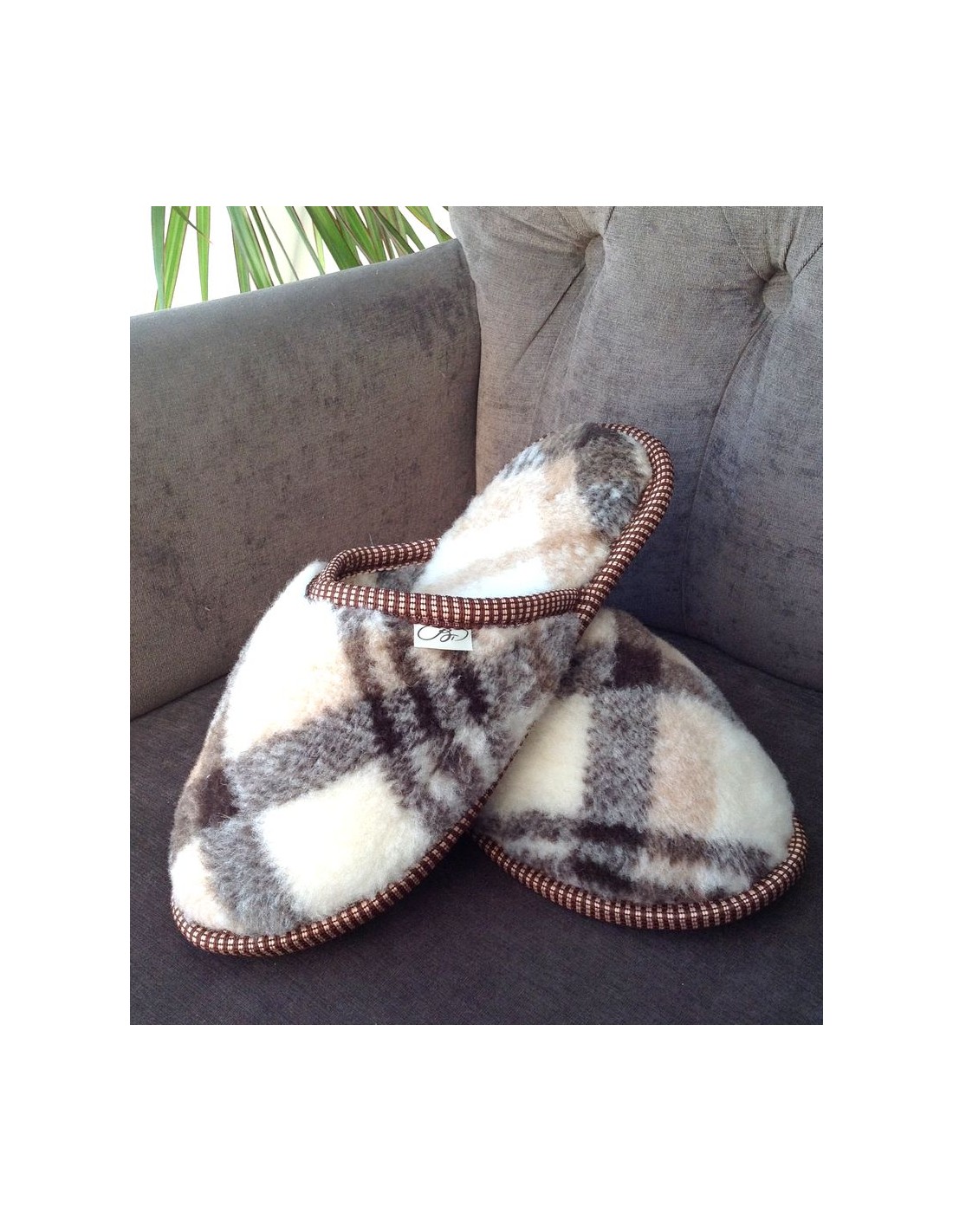 ТАПОЧКИ ШЕРСТЯНЫЕ В КЛЕТКУ. МЕРИНОС 100%.