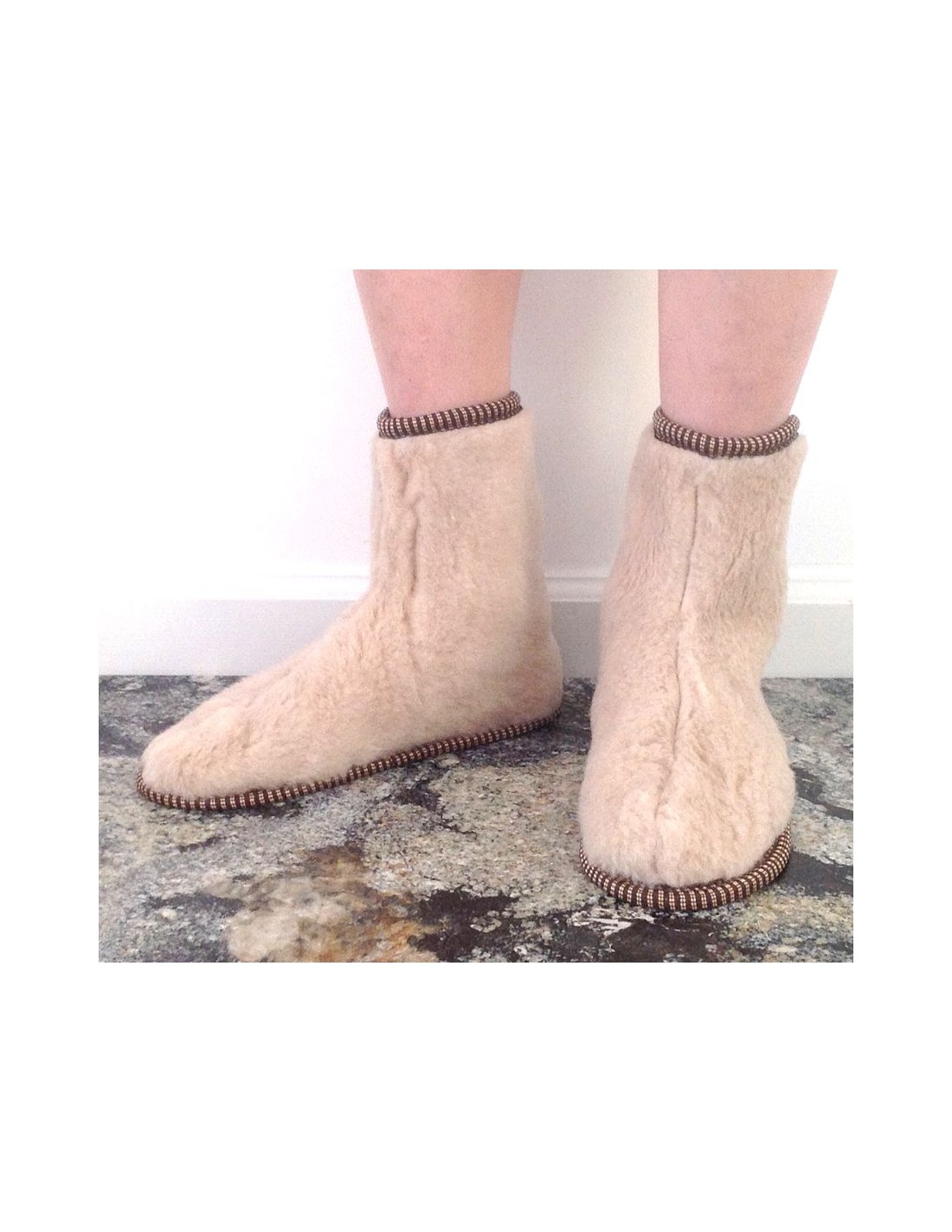 После того как шерсть примнётся, домашняя обувь сидит свободнее на ноге. Если вы хотите чувствовать сапожки более свободнее на ноге, возьмите на один размер больше.
