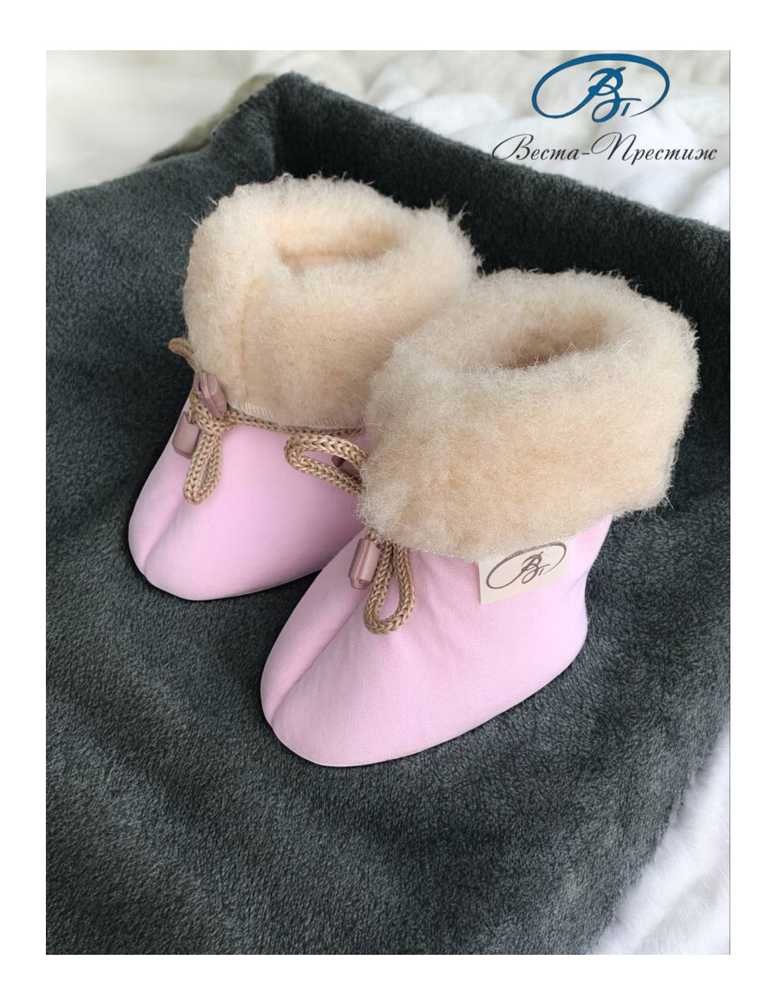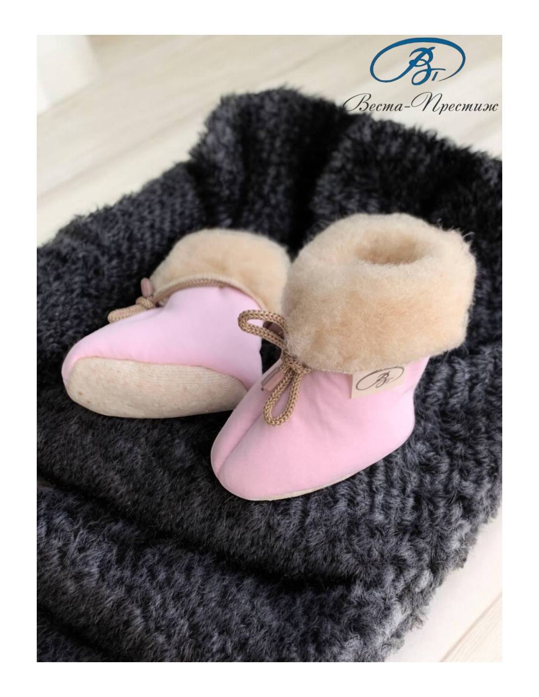 Подкладка пинеток изготовлена из натуральной шерсти и шерстяного меха, что обеспечивает дополнительный комфорт и тепло для ног малыша.