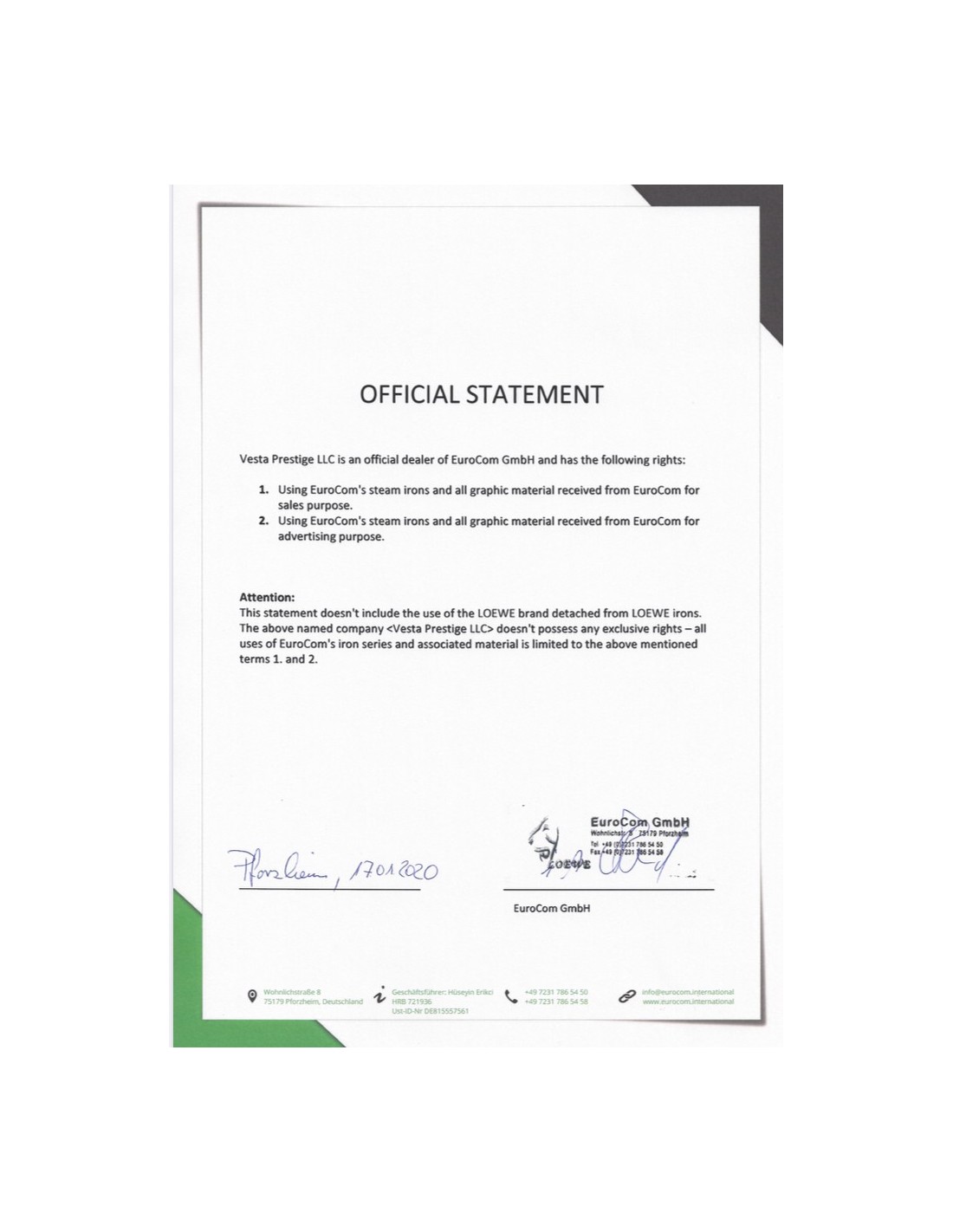 Наш девиз этого товара - "Этот парогенератор может все, что могут дорогие системы, но они не могут , то что может LOEWE PREMIUM! Уникальный парогенератор-утюг, который воплотил в себе все нововведения для легкой, удобной глажки, дезинфекции тканей и любых предметов в доме. Сервисное обслуживание в России, официальный представитель Веста-Престиж. ГАРАНТИЯ - 2 ГОДА! Поставщик из Германии в Россию, компания "Веста-Престиж"