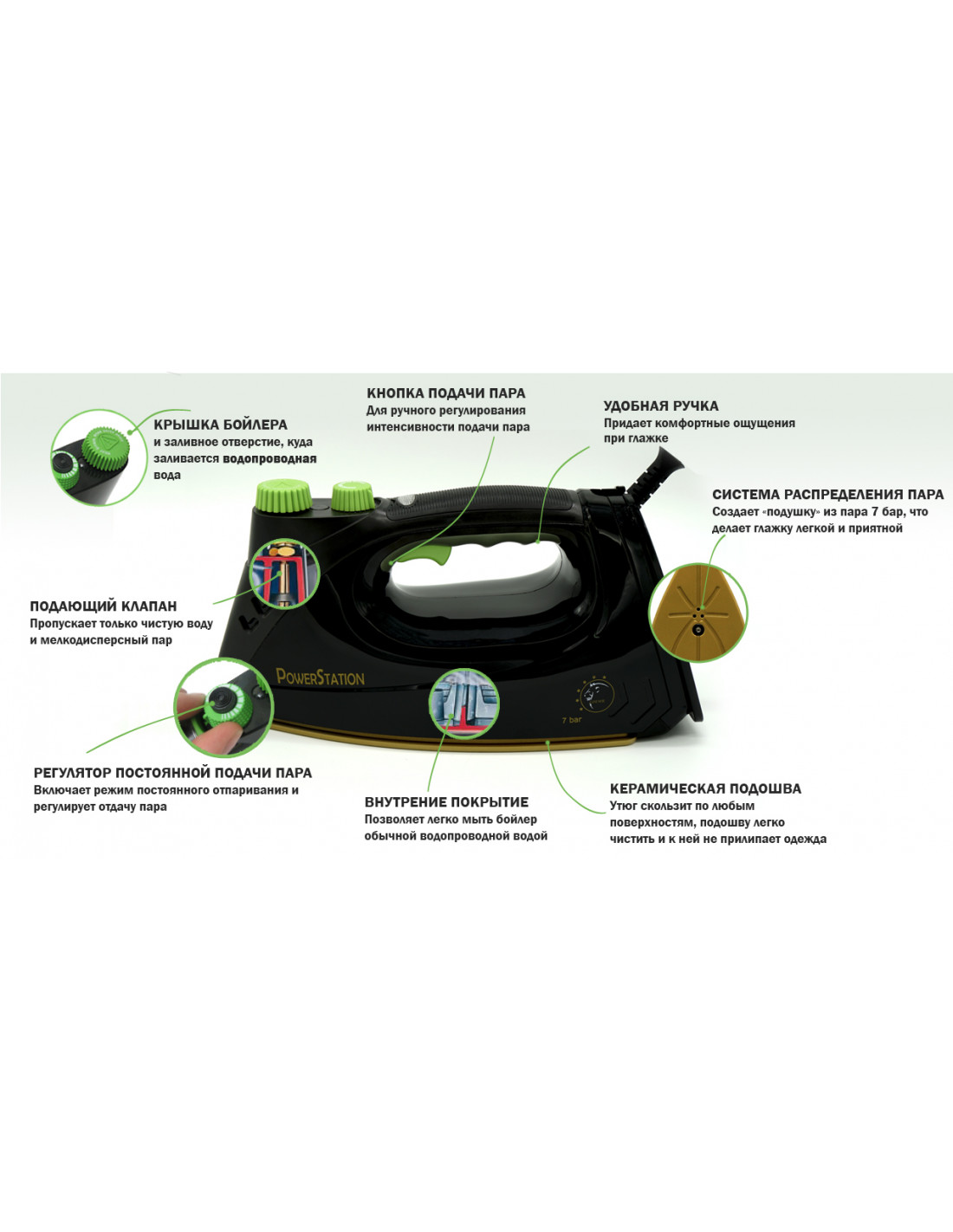 - Мощность давления пара: 7 bar (Паровой удар)