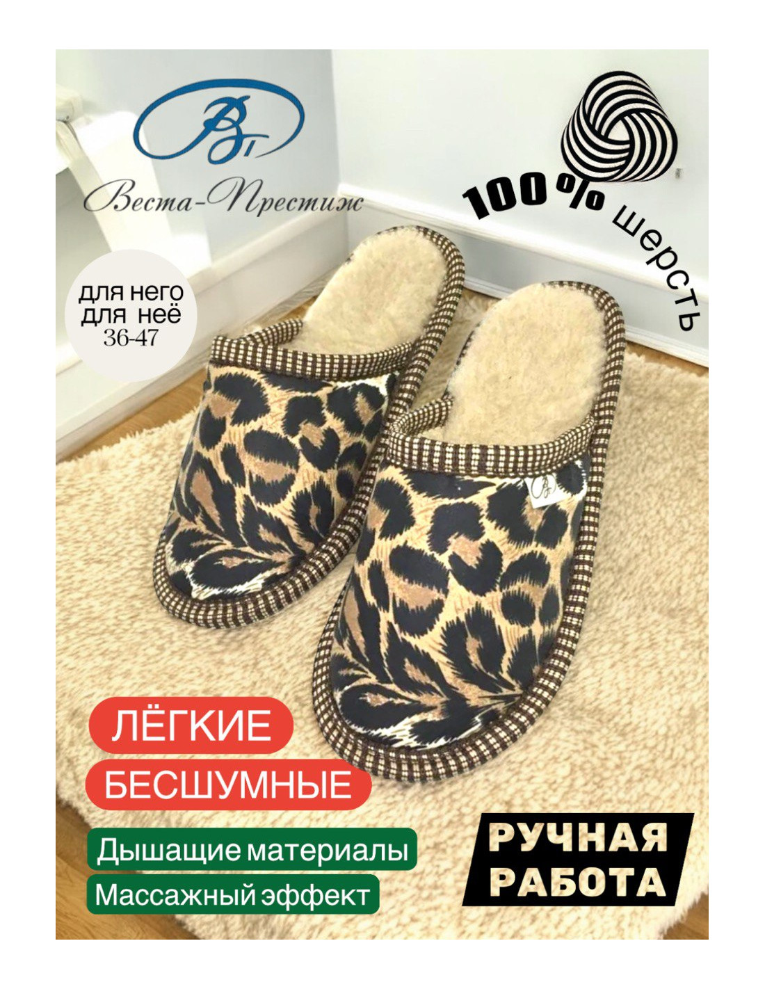 ТАПОЧКИ ИЗ ШЕРСТИ "ЛЕОПАРД"