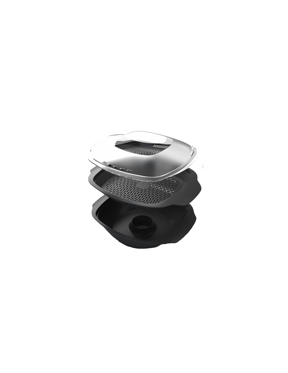 Пробка- дозатор имеет двойную функцию. Установленная в середине крышки, она предотвращает выход жидкости из емкости при больших скоростях, а также может быть использована как удобный дозатор. Пробка может быть установлена в двух положениях: заблокированная пробка, для использования аппарата при высокой скорости и с кипящими жидкостями; свободная пробка для использования аппарата при низкой скорости и низкой температуре, а также для выпаривания жидкости.